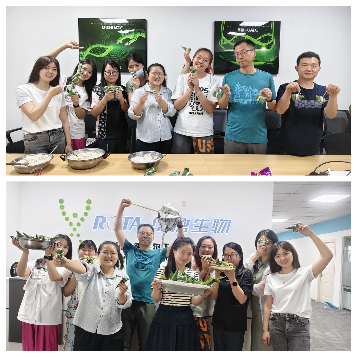 端午至,粽叶香。6月X日,华德生物「粽」合实验室热闹开张!公司备齐了粽叶、糯米与三大特色配方——绵密豆沙、流心咸蛋黄、古法红糖白粽,更有研发大牛现场教学立体三角粽的黄金折叠公式。